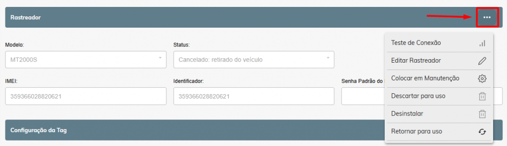 Ela pode ser usada para deixar o rastreador disponível para uma nova instalação, ou seja, com status “inativo”. Essa opção está disponível apenas para rastreadores com status “cancelado”.