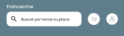 • Painel Superior: Mostra o nome da marca, opção de buscar por um rastreador ativo digitando o nome do cliente ou a placa do veículo na barra de pesquisa, além do botão “Carrinho” e do botão “Minha Conta”.